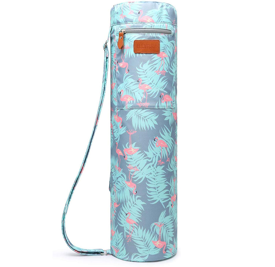 The bag has a good amount of space so you do not have to struggle to roll your yoga mat tight to fit it in. The second coolest thing, besides that flamingo design, are the side pockets, that are large enough to make your life easy. The smaller back pocket has a velcro closure and is great for your smaller items, such as your phone and keys.